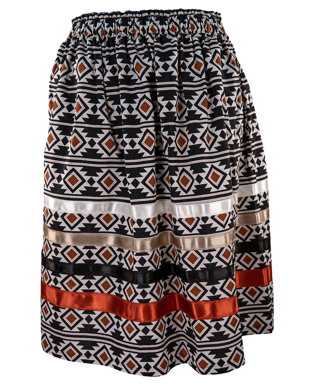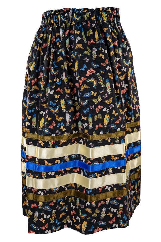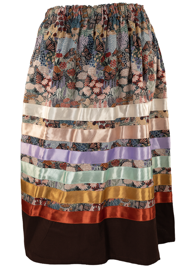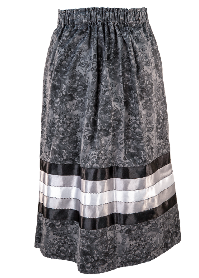 Gray and Black Floral Ribbon Skirt