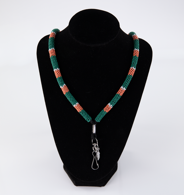 Green, Copper, and White Beaded Lanyard